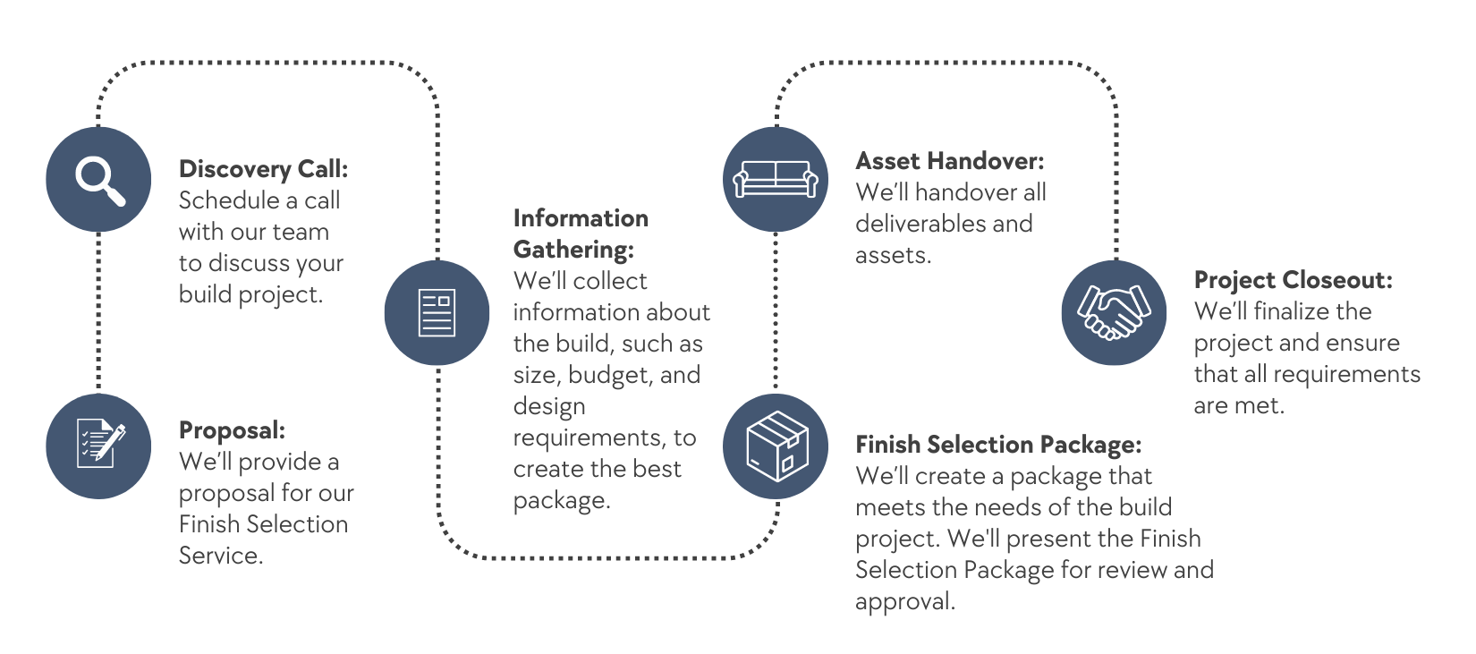 We breakdown our Finish Selection Packages by space. Refer to below for an overview of spaces we offer packages for, or download the Home Builder’s Finish Selection Master Checklist for a comprehensive list.